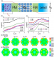 (d)和 (e) 代表电压作用下CoFe ( x=0.5)及Co|Pt ( x=0.1)的布里渊区能量分布图;红色和蓝色分别代表铁磁和反铁磁耦合。